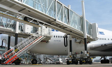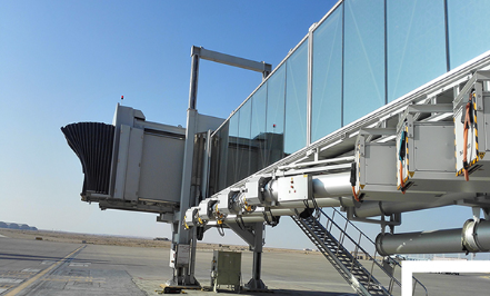 A380登機(jī)橋二層U1超高艙門而設(shè)計(jì)的登機(jī)橋,采用了行業(yè)內(nèi)首創(chuàng)的四輪驅(qū)動行走機(jī)構(gòu)及其控制系統(tǒng)。